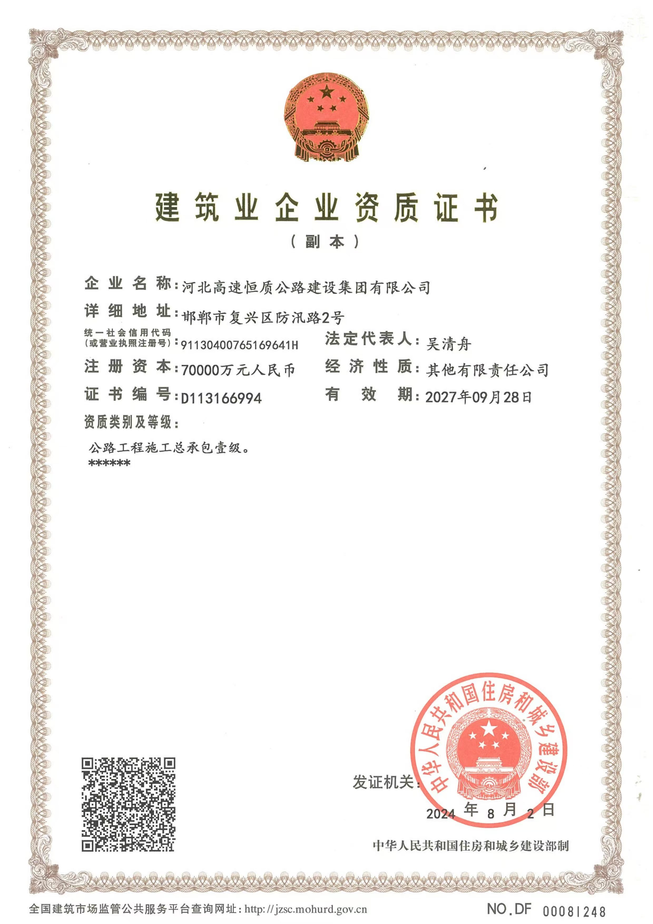 河北高速恒質(zhì)公路建設集團有限公司始建于2004年,前身是邯鄲市恒質(zhì)公路建設集團有限公司。2024年7月成為河北高速公路集團有限公司二級子公司,現(xiàn)有職工500余人,下轄18家子公司13個分公司,參股公司3家 ,注冊資本7億元,是一家集公路工程施工、路用材料研發(fā)生產(chǎn)、試驗檢測、瀝青貿(mào)易、公鐵物流于一體的多元化、綜合性單位,國家級高新技術(shù)企業(yè),河北省專精特新中小企業(yè),河北省首家瀝青拌合環(huán)保引領(lǐng)性企業(yè)。公司擁有公路工程總承包壹級、公路交通工程(公路安全設施)專業(yè)承包壹級、機電工程施工總承包貳級、電力工程施工總承包貳級、市政公用工程施工總承包貳級、建筑工...